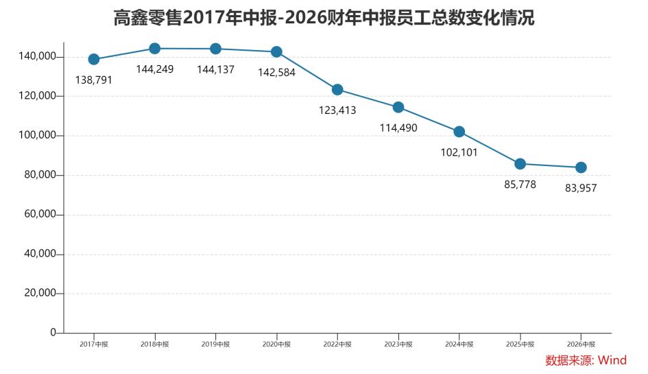 改革已初見(jiàn)成效,高鑫零售的員工成本從2024年同期的41.06億元降至37.88億元,員工總數(shù)從巔峰時(shí)期的14.42萬(wàn)人優(yōu)化至當(dāng)期的8.4萬(wàn)人,減少了超一半人員。