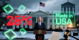 DoNews1月15日消息,據(jù)官方媒體消息,當(dāng)?shù)貢r(shí)間2026年1月14日,美國白宮宣布,從15日起對(duì)部分進(jìn)口半導(dǎo)體、半導(dǎo)體制造設(shè)備和衍生品加征25%的進(jìn)口從價(jià)關(guān)稅。此前,當(dāng)?shù)貢r(shí)間2025年8月6日,美國總統(tǒng)特朗普表示,美國將對(duì)芯片和半導(dǎo)體征收約100%的關(guān)稅。