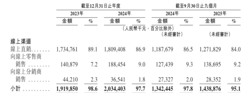據(jù)HBN招股書顯示,截至2025年12月31日,HBN旗下早C晚A產(chǎn)品組合,包括α-熊果苷煥顏精萃水和視黃醇塑顏精萃乳,累計(jì)銷量超過3000萬件。2025年前9個(gè)月HBN線上渠道營收14.39億元。拉長時(shí)間維度,2023、2024年線上營收分別為19.20億元、20.34億元。
