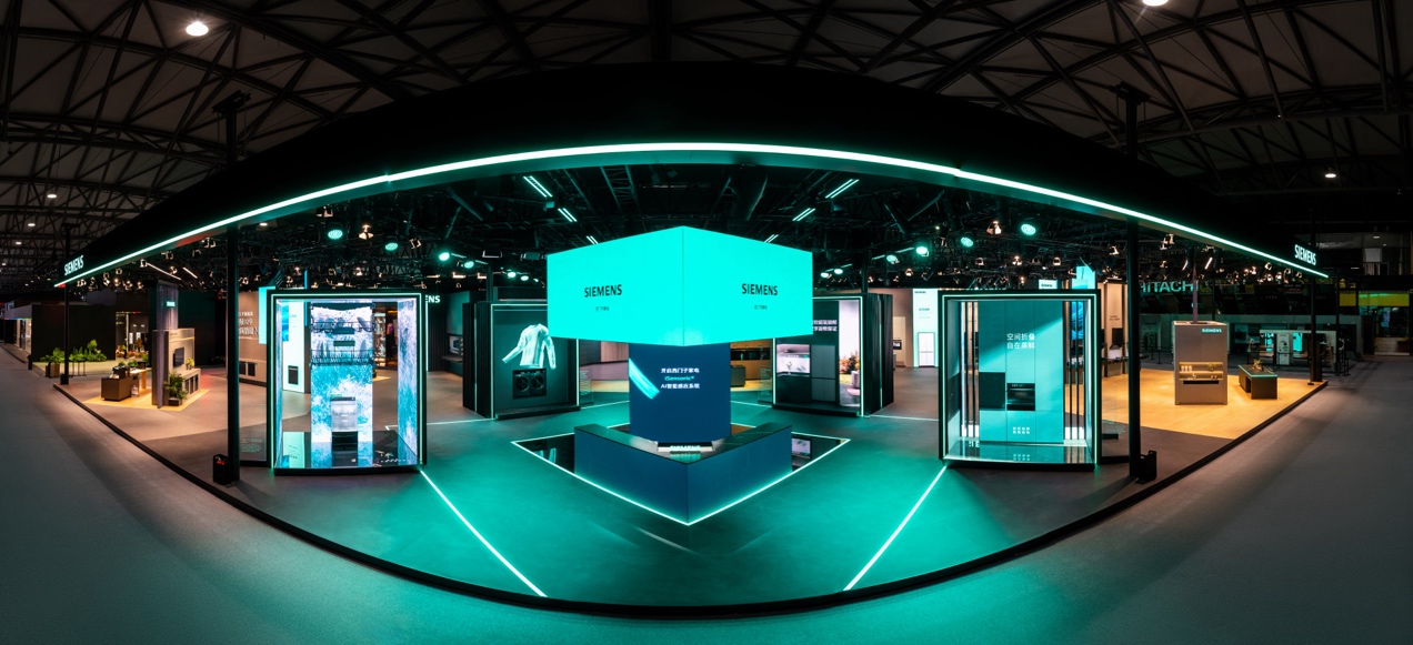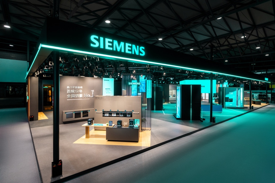 西門子家電展臺(tái)位于上海新國際博覽中心N4館4C11,展臺(tái)以44米超長(zhǎng)面寬、多動(dòng)線布局與開放式設(shè)計(jì),打破傳統(tǒng)展區(qū)單一展示模式。整個(gè)空間被精心規(guī)劃:智能新品特展區(qū)集中呈現(xiàn)年度創(chuàng)新成果;studioLine高端嵌入式廚電區(qū)彰顯德系精工的極致;北極光系列月影白設(shè)計(jì)空間構(gòu)建套系化美學(xué)家居場(chǎng)景;品牌專業(yè)服務(wù)墻則傳遞其“一站式德系服務(wù)”的承諾。四周環(huán)繞的冰箱、洗烘、廚電、洗碗機(jī)四大品類展示區(qū),共同構(gòu)建了一個(gè)可觸可感的體驗(yàn)空間。