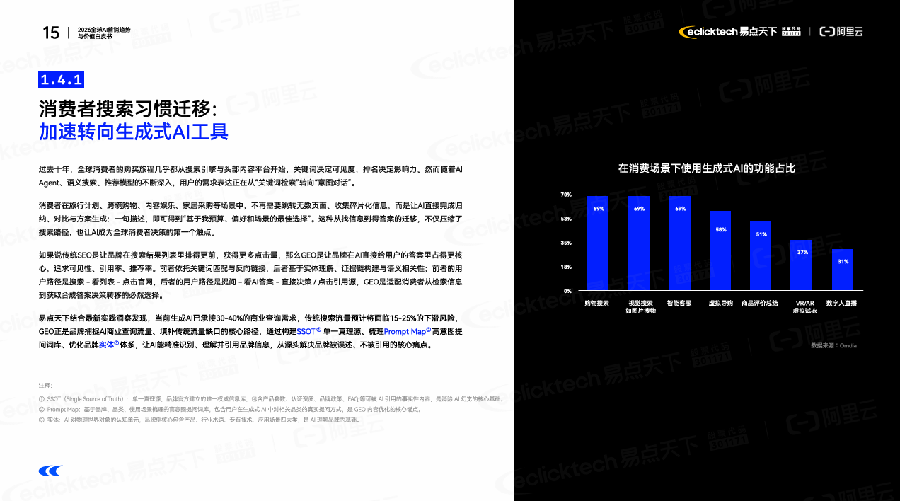 消費者行為的變化,同樣正在深刻重塑營銷邏輯?!栋灼分赋?,第一層變化,發(fā)生在搜索行為本身。傳統(tǒng)的搜索引擎框只有20個字符,用戶在碎片化信息中篩選;而現(xiàn)在的 AI 對話框擁有100 萬Token 的上下文能力,用戶可以扔進一本書,要求一個確定性的結(jié)果。這種從"找信息"到"得答案"的轉(zhuǎn)變,讓一個新的營銷概念開始受到越來越多品牌關(guān)注:GEO(Generative Engine Optimization,生成式引擎優(yōu)化)。