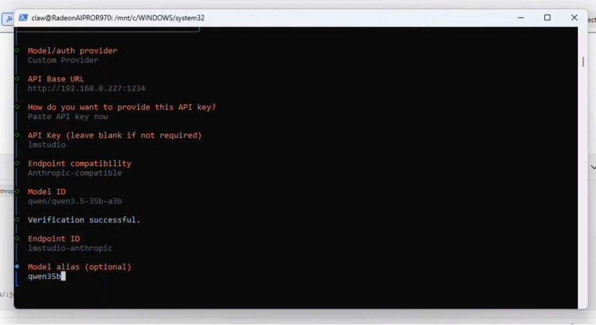 此時(shí)OpenClaw將驗(yàn)證連接并顯示"Verification Successful(驗(yàn)證成功)",隨后提示您輸入“Endpoint ID(端點(diǎn)