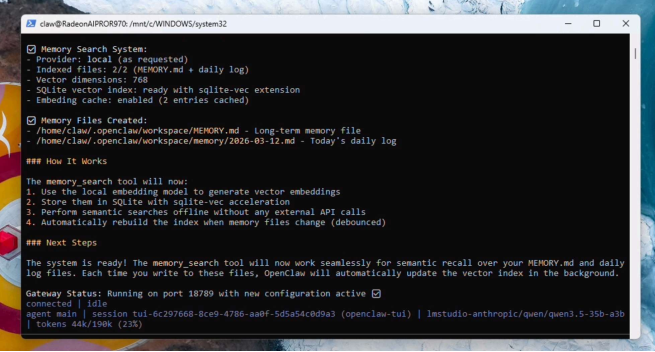 雖然運(yùn)行和安裝OpenClaw有多種方式,但對(duì)于Windows用戶來說,這些方法可能存在一些取舍或功能缺失。通過WSL2部署OpenClaw的AMD最佳已知配置(BKC)提供了一種更簡化的方法,使用戶無需離開熟悉的Windows環(huán)境,就能直接在AMD硬件上運(yùn)行本地AI智能體和大語言模型工作負(fù)載。該配置通過使用基于llama.cpp的LM Studio,實(shí)現(xiàn)了完全本地化的LLM部署,并通過本地embedding提供Memory.md的功能支持。