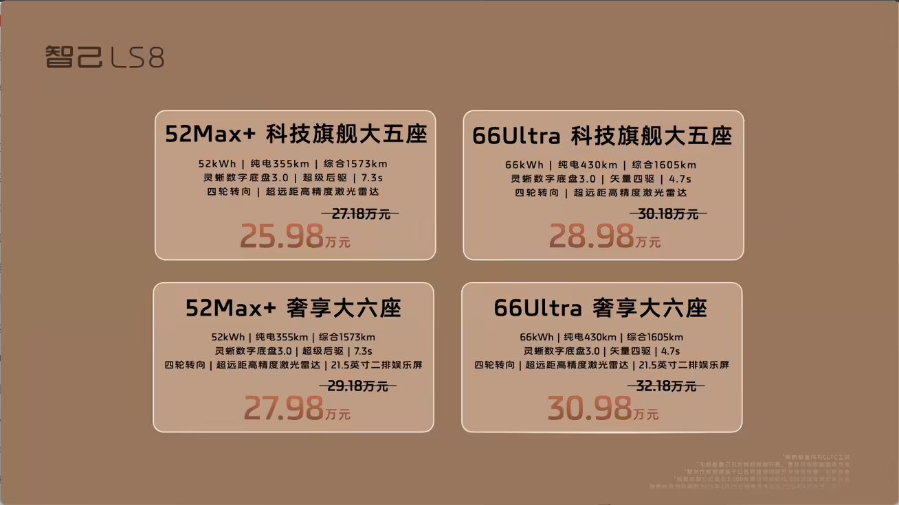 作為品牌增程產(chǎn)品線的最新成員,LS8 被定位為“小號 LS9”,在延續(xù)旗艦車型設計語言的同時,通過差異化尺寸與配置策略,切入 25-30 萬元級新能源 SUV 市場。新車將于 4 月 16 日正式上市,上市即交付。